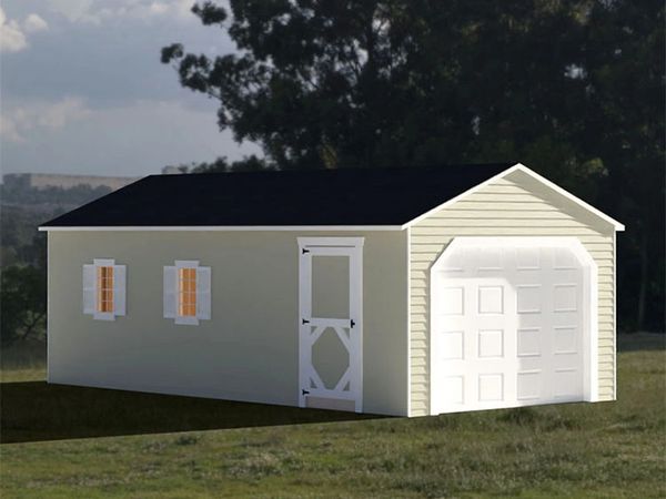 Standard features of our Cottage A-Frame one-story one-car garages include: